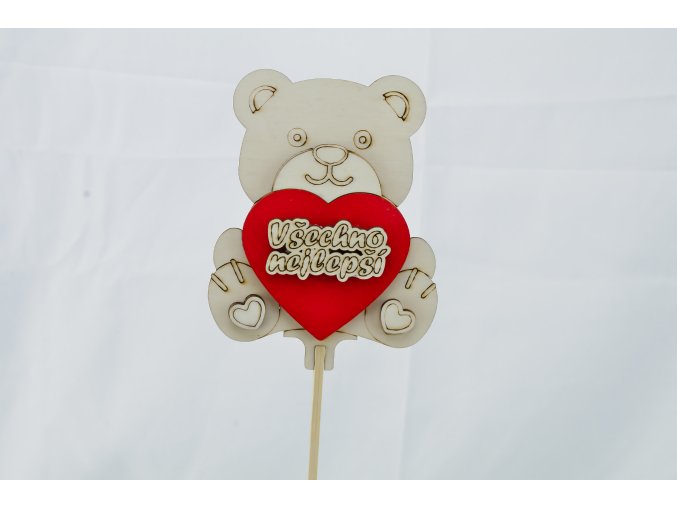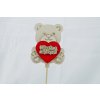 Medvídek se srdcem a nápisem "Všechno nejlepšé" – dřevěný zápich do květin
